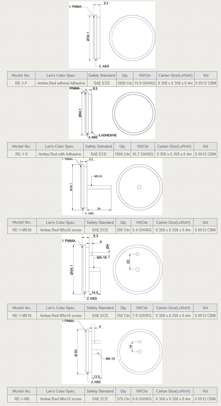 Side Reflector. 1. D 64.1mm 2. D 60mm
